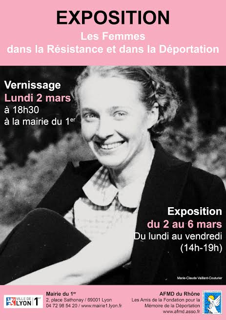 En coopération avec la mairie du 1er arrondissement de Lyon, l’AFMD du Rhône organise, dans le cadre de la célébration de la journée de la femme, une exposition « Les femmes dans la Résistance et la Déportation« .