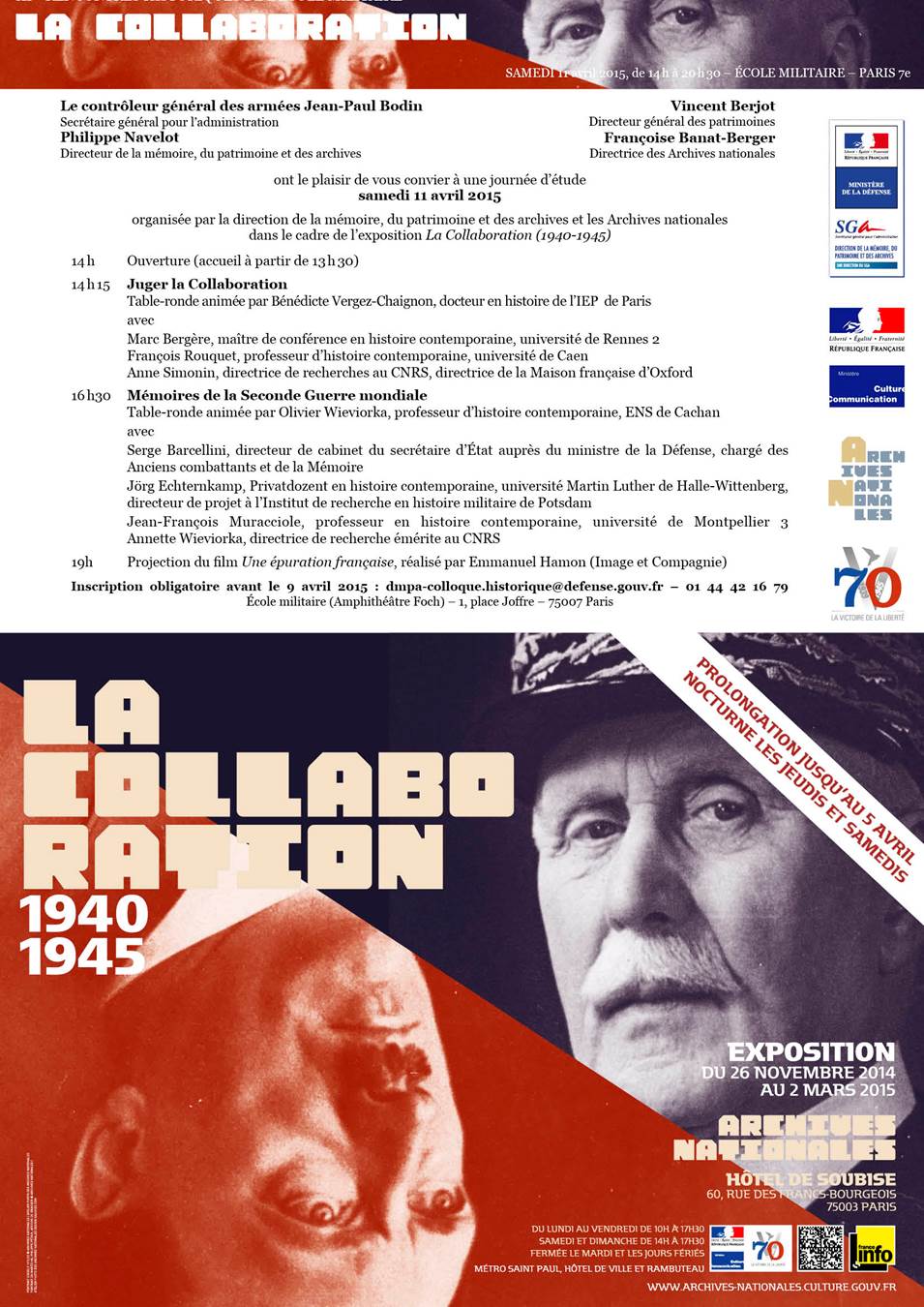 En lien avec l’exposition La collaboration 1940-1945 qui se tient aux Archives nationales cette journée d’étude s’inscrit dans le cadre du 70ème anniversaire de la Libération de la France et de la victoire sur le nazisme.