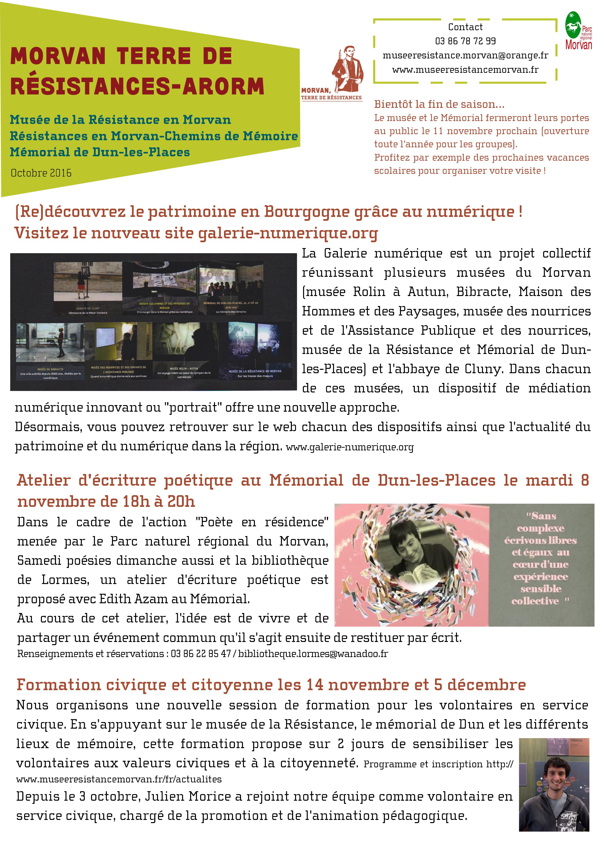 Actualités | Musée de la Résistance en Morvan, Mémorial de Dun-les-Places, Résistances en Morvan-Chemins de mémoire