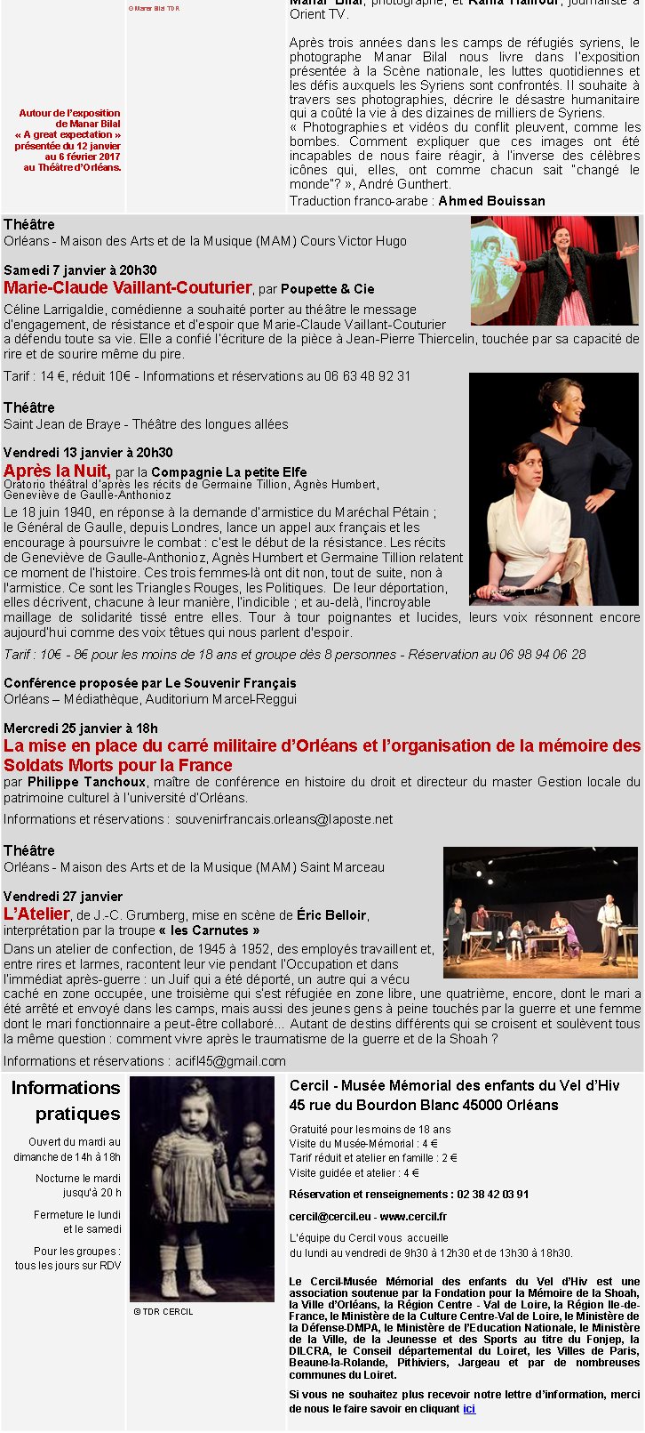 Lettre d’information | Cercil, janvier 2017