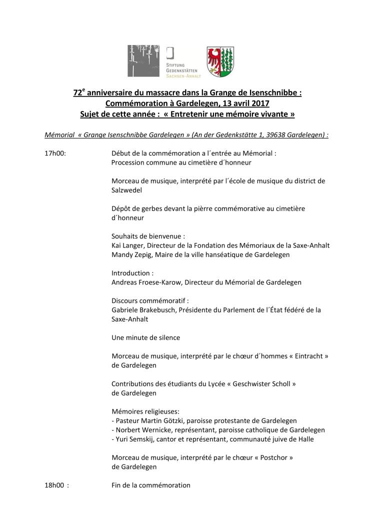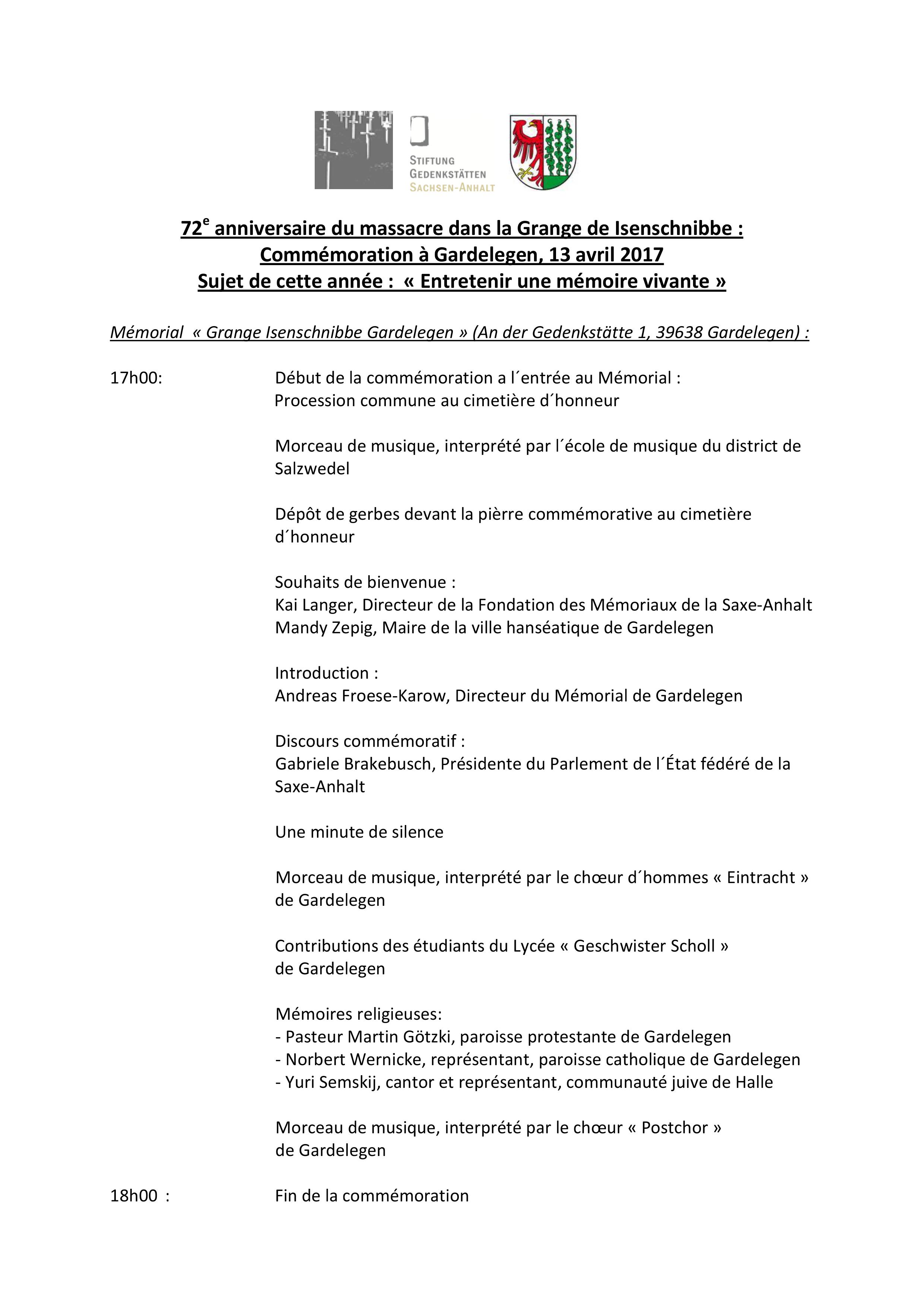 Invitation | 72ème anniversaire du massacre dans la grange de Isenschnibbe : Commémoration à Gardelegen