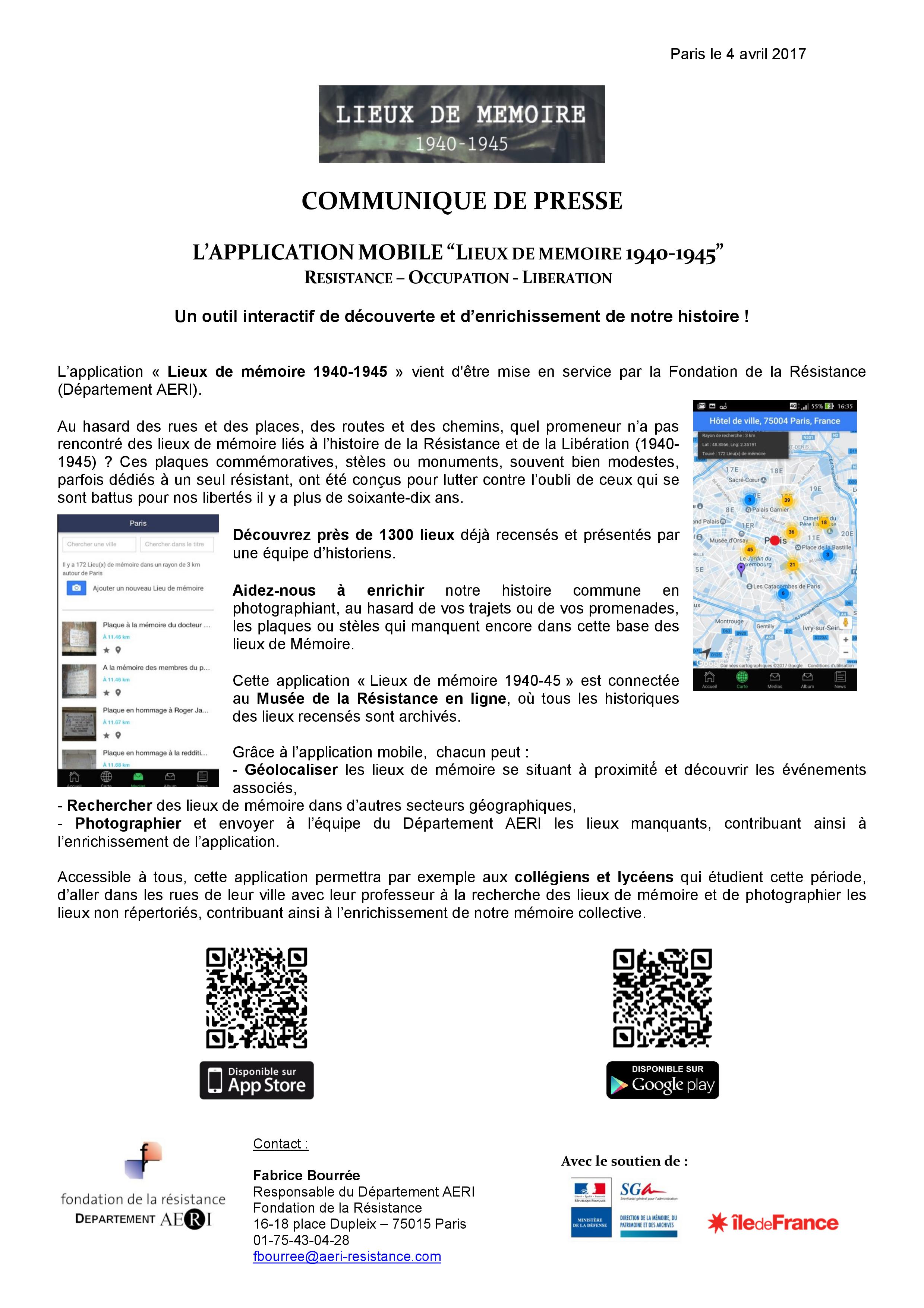 Actualité | Application mobile « Lieux de mémoire 1940-1945 »