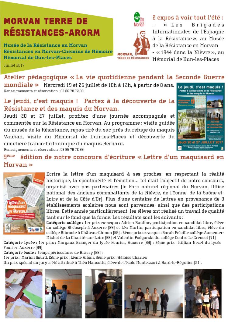 Lettre d’information | Morvan Terre de Résistances-Arorm, juillet 2017