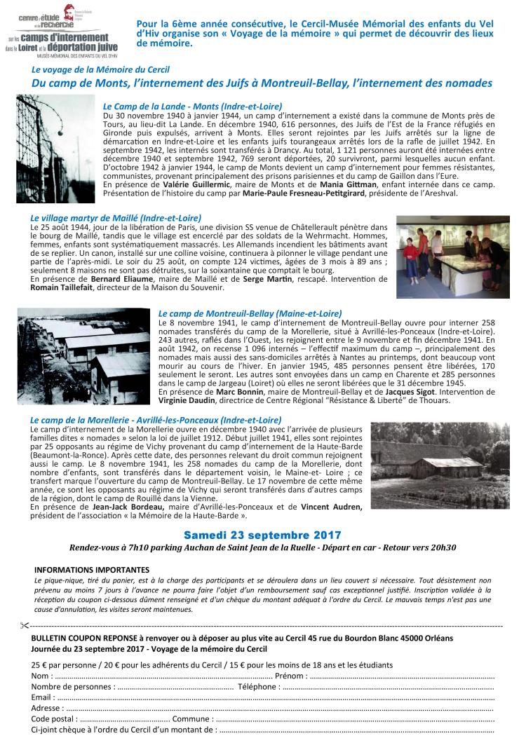 Voyage | « Voyage de la mémoire » du Cercil, le 23 septembre 2017