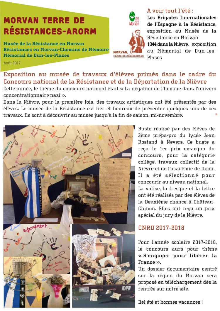 Lettre d’information | Actualités de la Musée de la Résistance en Morvan, août 2017