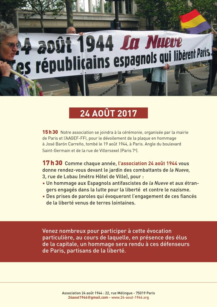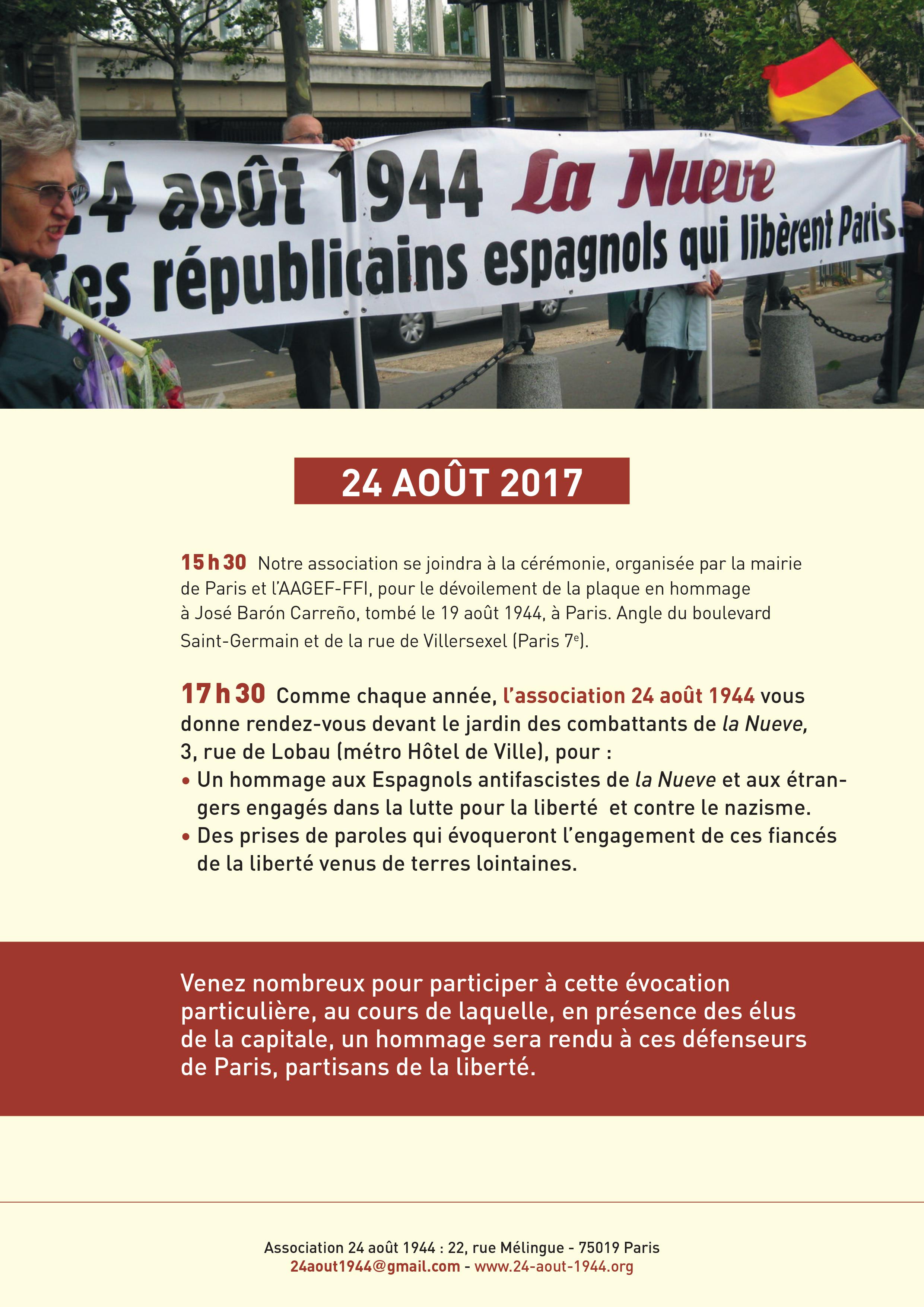 Hommage | Hommage aux Espagnols antifascistes de la Nueve et à tous les Étrangers engagés dans la lutte pour la liberté contre le nazisme, le 24 août 2017