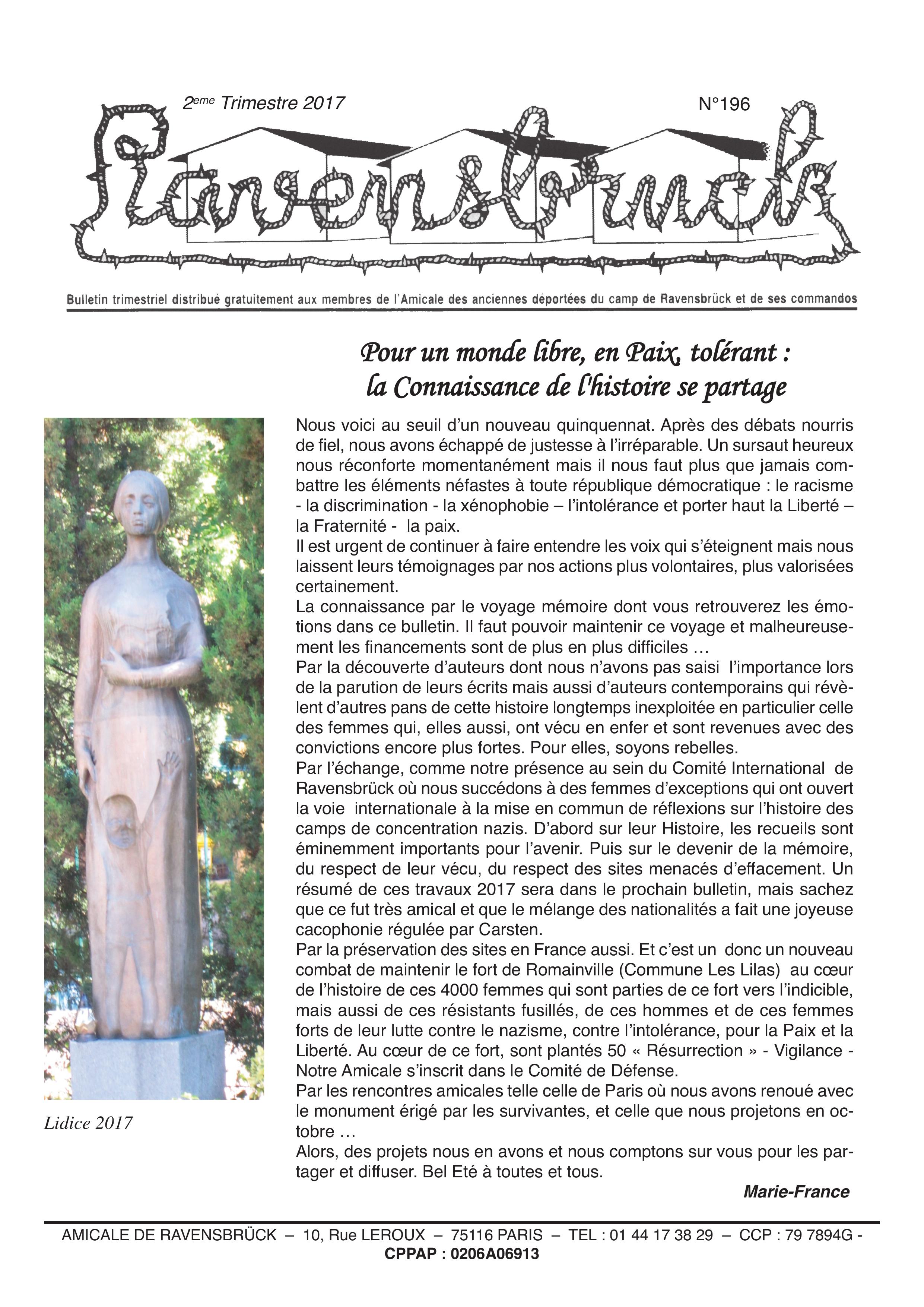 Actualité | Bulletin N° 196 de l’Amicale des anciennes déportées du camp de Ravensbrück et ses commandos
