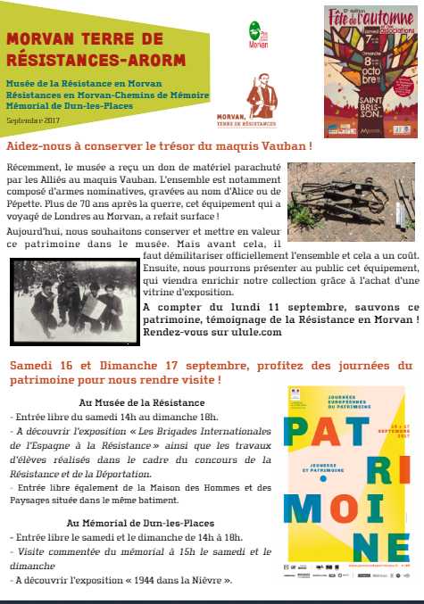 Journées du patrimoine 2017 | Musée de la Résistance en Morvan