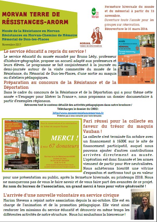 Lettre d’information | Musée de la Résistance en Morvan – novembre 2017