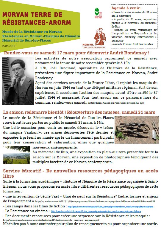 Lettre d’information | Le musée de la Résistance en Morvan en mars 2018