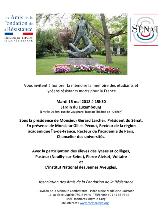 Hommage aux étudiants résistants – Mardi 15 Mai – dans les Jardins du Luxembourg
