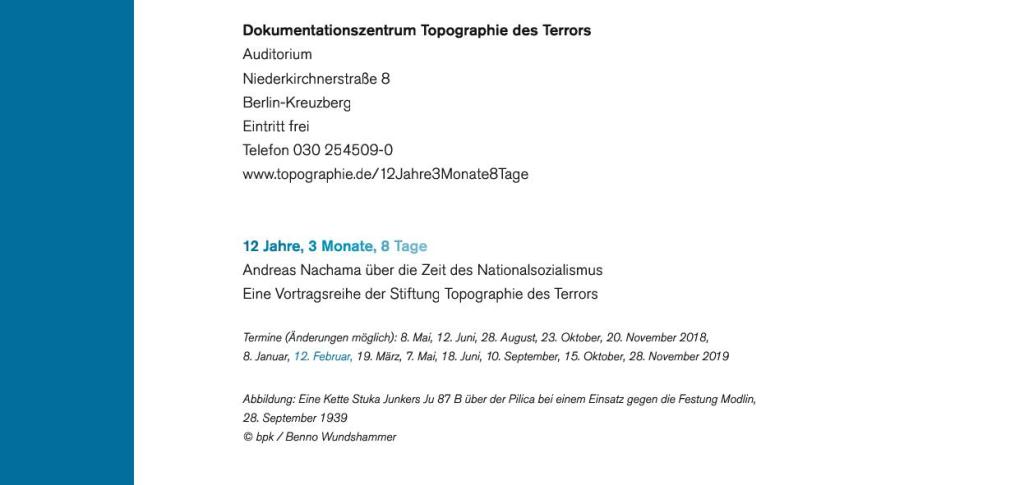 Stiftung Topographie des Terrors | Veranstaltungen | Niederkirchnerstr. 8 | 10963 Berlin-Kreuzberg