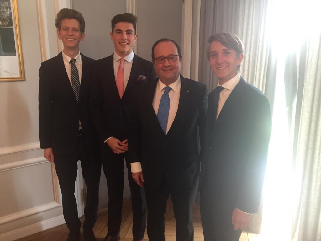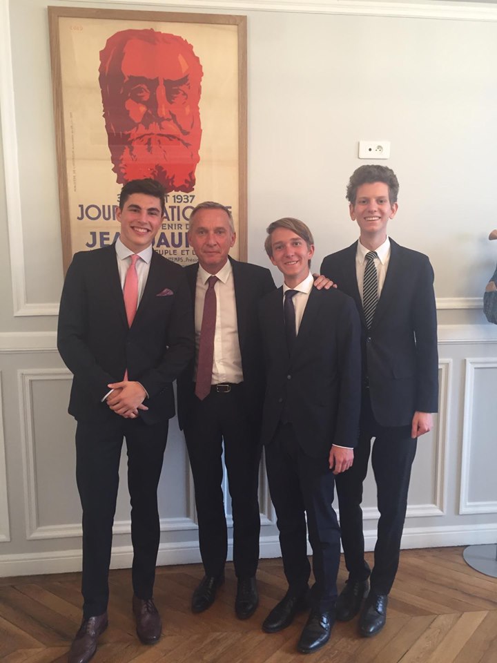 Lors du 75ème anniversaire du massacre d’Oradour-sur-Glane avec l’ambassadeur autrichien Michael Linhart (Ambassade d’Autriche à Paris), les trois veilleurs de mémoire en France, Lukas Ströbele, Moritz Kolarik et Oskar Weihs du Service Autrichien de la Mémoire, étaient invités par Bernard Combes (Maire de Tulle) et François Hollande (ancien Président de la République) pour un échange. Les thèmes étaient l’Autriche et son état actuel, la jeunesse et sa participation dans la politique, le service obligatoire en Autriche, le service de la mémoire, le travail dans les mémoriaux françaises des serviteurs et leur perspective envers la France. Bernard Combes et François Hollande ont montré beaucoup d’intérêt et d’appréciation pour l’activité des jeunes hommes. Le service autrichien à l’étranger voudrait remercier Messieurs Combes et Hollande très vivement.