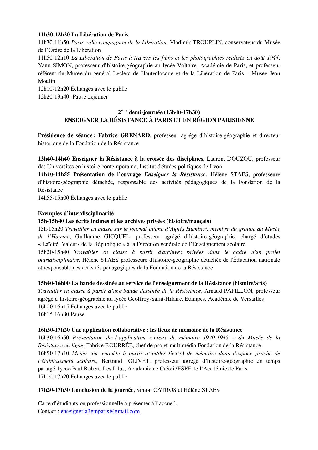 Fondation de la Résistance : Journée d’étude et de formation le 19 juin 2019 à Paris