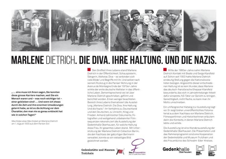 Gedenkstätte und Museum Trutzhain: Einladung zur Eröffnung der Austellung Marlene Dietrich. Die Diva. Ihre Haltung. Und die Nazis.