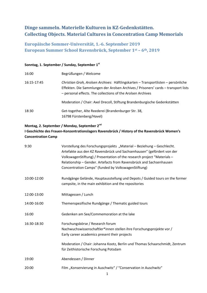 in der Gedenkstätte Ravensbrück stattfinden wird. Die 14. Europäische Sommer-Universität Ravensbrück befasst sich der Geschichte der Sammlungen von KZ-Gedenkstätten in West- und Osteuropa, mit den Artefakten sowie mit Fragen der Konservierung und Restaurierung. Entsprechend wird es Vorträge und Workshops zu den folgenden drei Themenschwerpunkten geben: