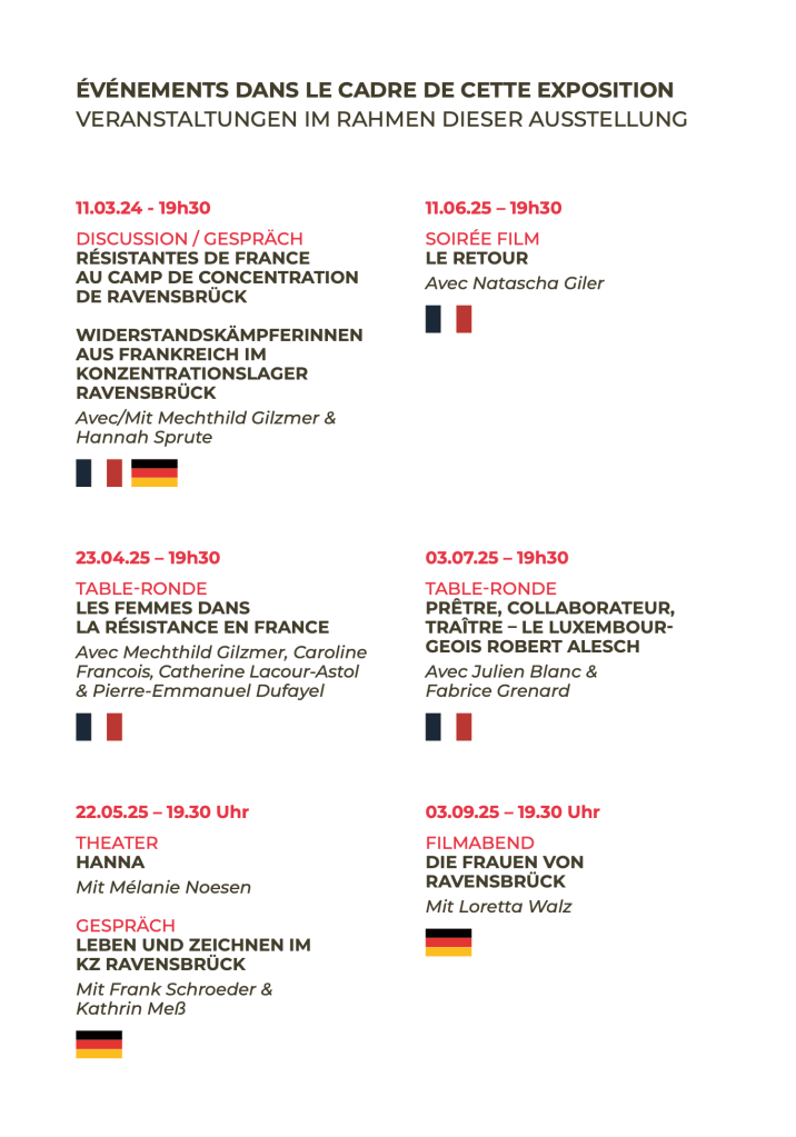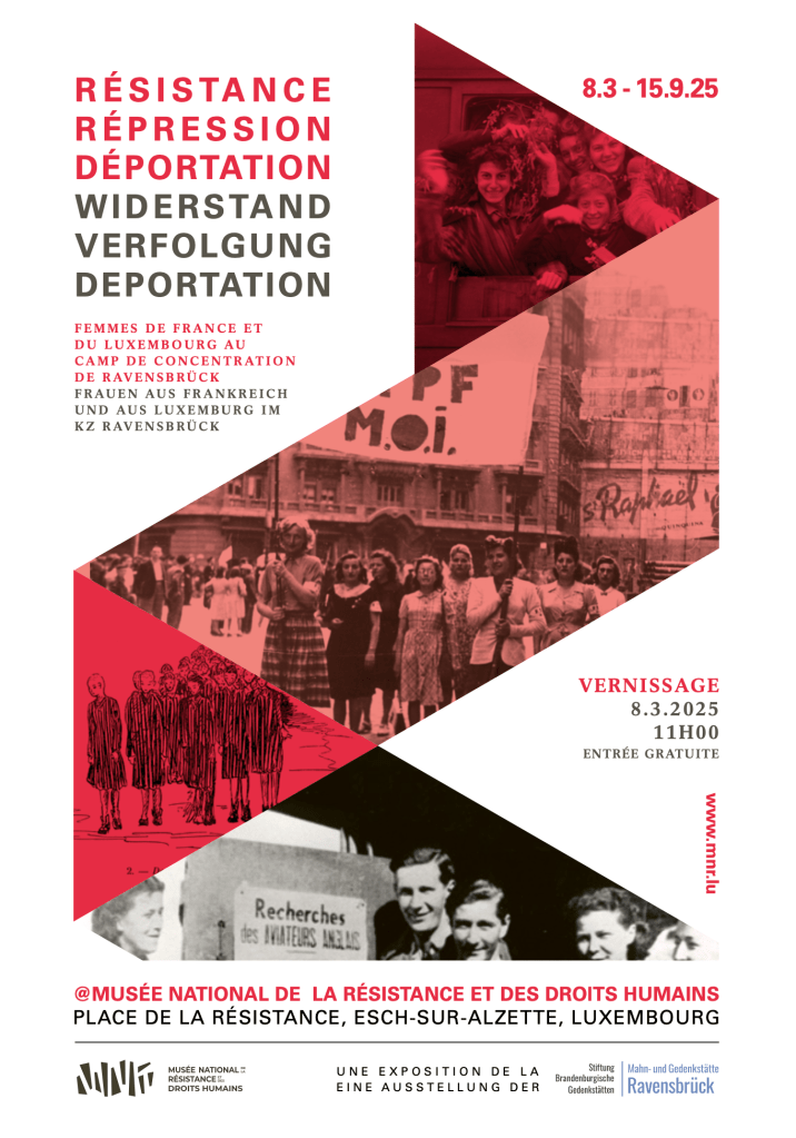 Du 8 mars au 15 septembre 2025, le Musée National de la Résistance et des Droits Humains à Esch-sur-Alzette accueillera l’exposition Résistance – Répression – Déportation. Femmes de France et du Luxembourg au camp de concentration de Ravensbrück.