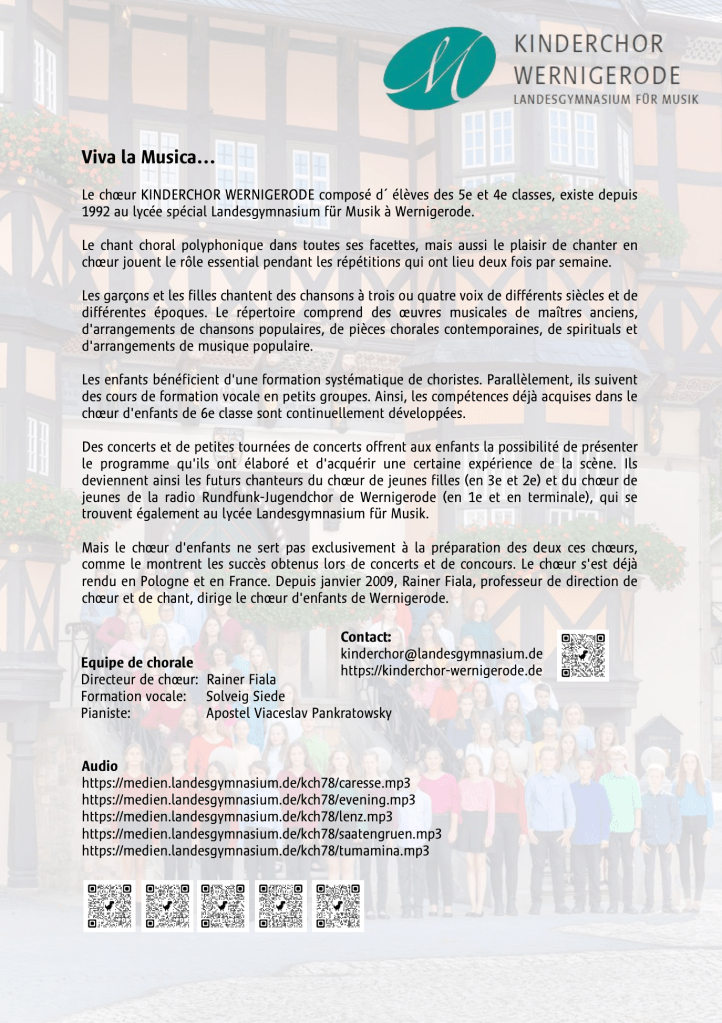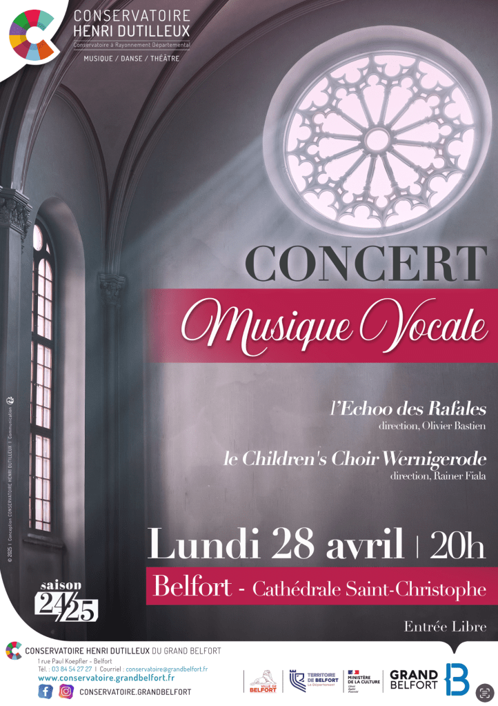 Le lundi 28 avril 2025 à 20h, un concert vocal réunira à la cathédrale Saint-Christophe de Belfort deux chorales : L’Écho des Rafales (France) et le Children’s Choir Wernigerode (Allemagne), dans le cadre de la coopération entre le Territoire de Belfort et le Landkreis Harz.