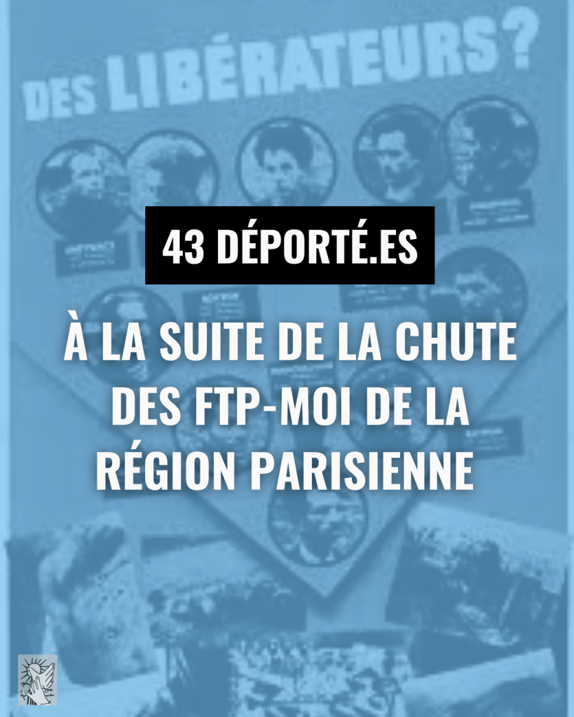 À l’issue de la troisième filature (juillet-novembre 1943) des Brigades spéciales (BS) de la police française, 68 arrestations déciment les rangs des FTP-MOI (Francs-tireurs et partisans – Main d’œuvre immigrée) de la région parisienne.