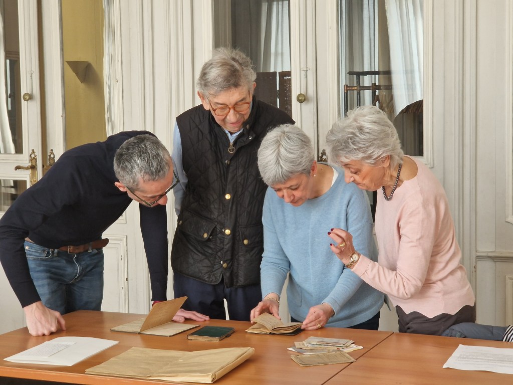 Jeudi 19 mars 2026, la Fondation pour la mémoire de la déportation a eu la grande joie de rencontrer madame Danielle Leyrahoux, invitée à la Maison des Fondations pour faire don des archives de Pierre Soulié, son oncle. L’accueillaient notamment Patricia Gillet, responsable du pôle guerres mondiales aux Archives nationales et membre du bureau de la FMD, Cyrille Le Quellec, responsable archives-documentation à la FMD et Serge Wolikow, président de la Fondation.