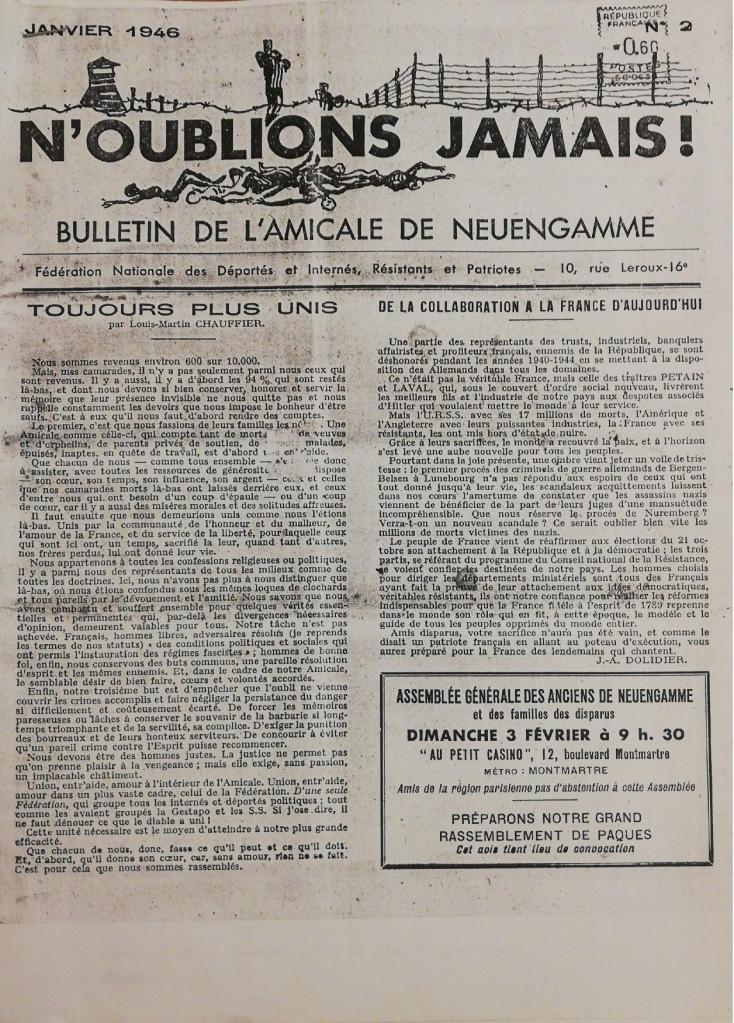 N’oublions Jamais, Bulletin de l’amicale de Neuengamme